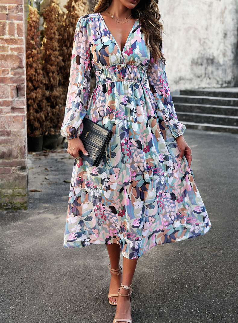 Dress Autumn Women Clothing Bohemian Vacation Casual Printed Dress