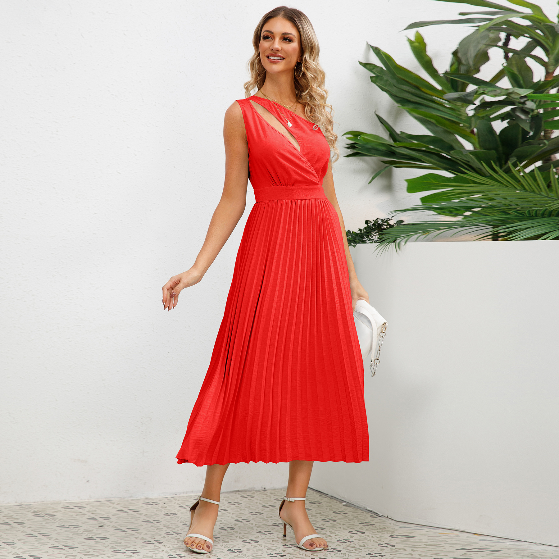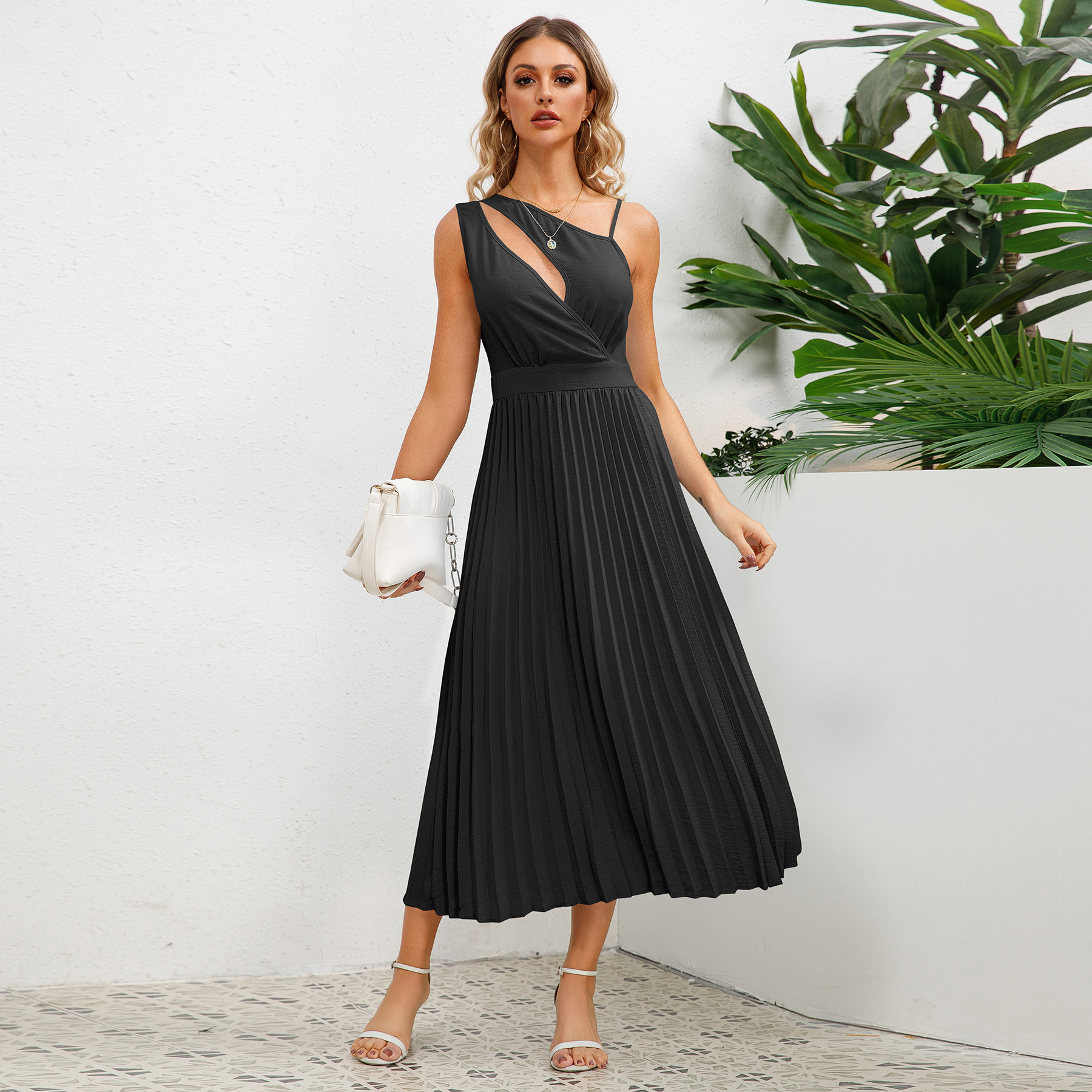 Dress Sexy Slim Mid Length Pleated A Line Dress