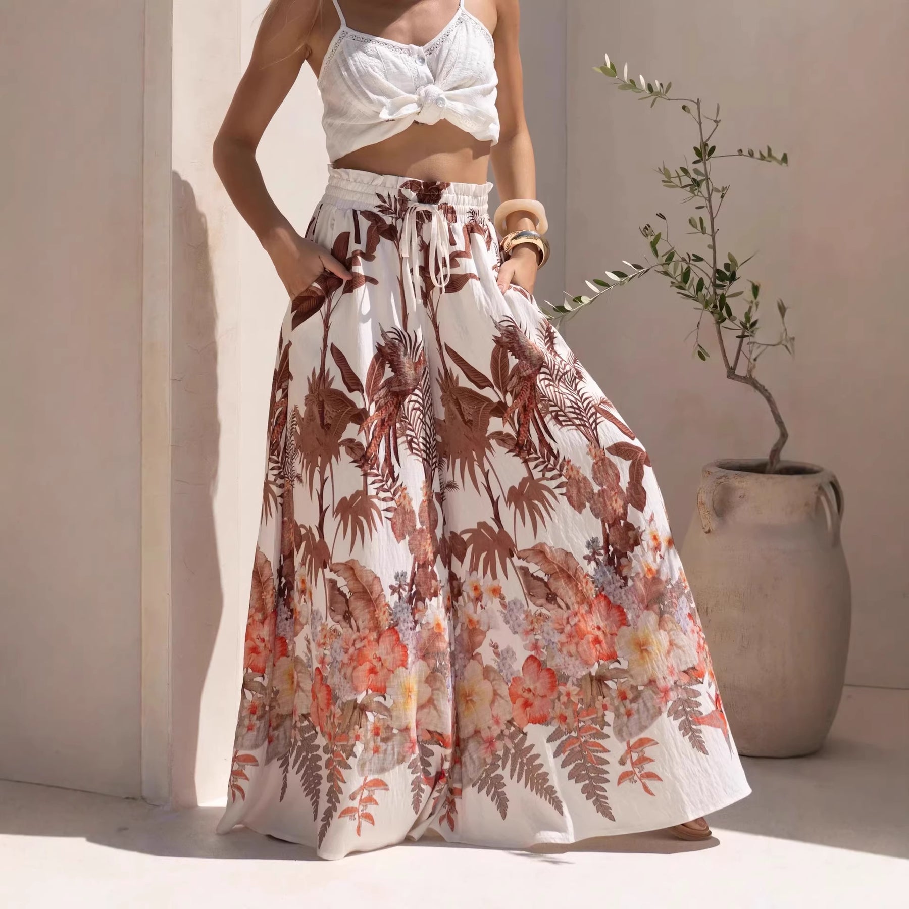 Summer Wide Leg Pants Leaf Print Casual Loose Wide Leg Pants