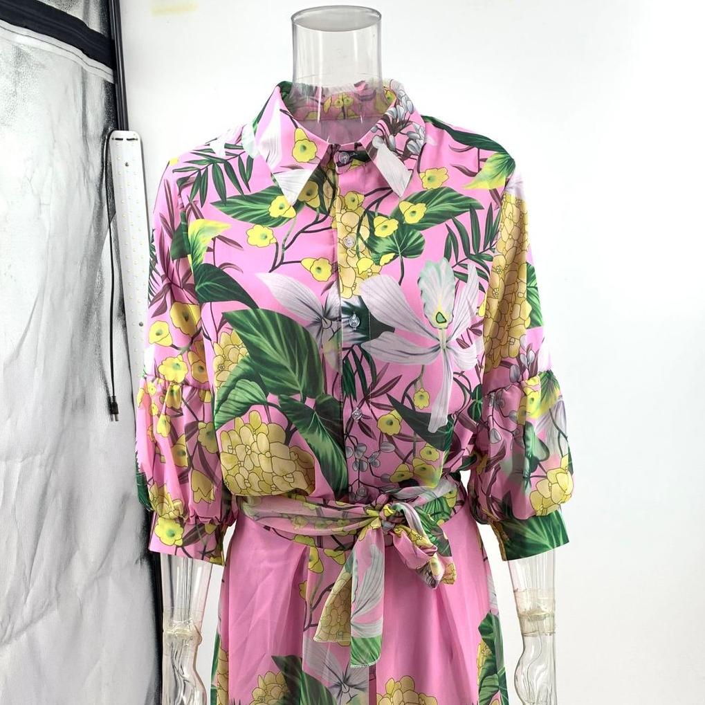 Women Printing Elegant Young Long Sleeve Skirt Two Piece Set