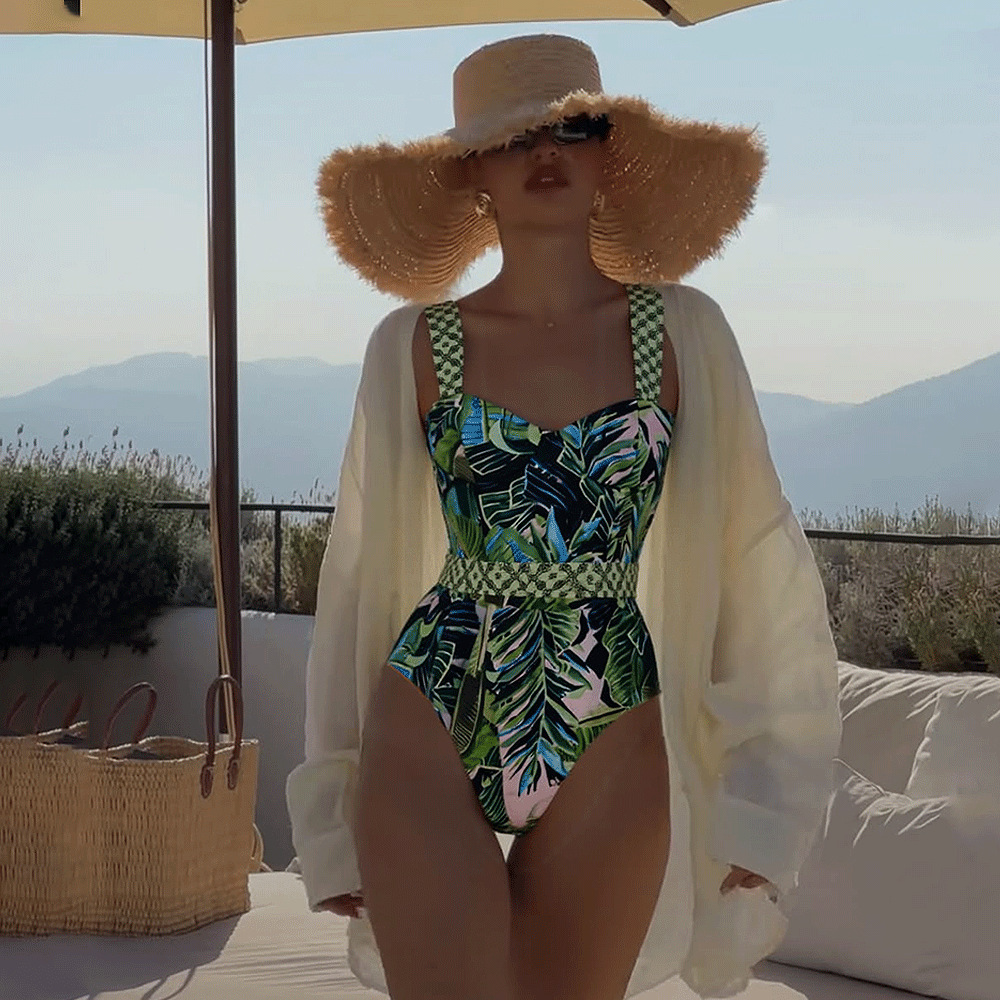 Printed Waist Controlled Slimming One Piece Swimsuit Women Vacation Be