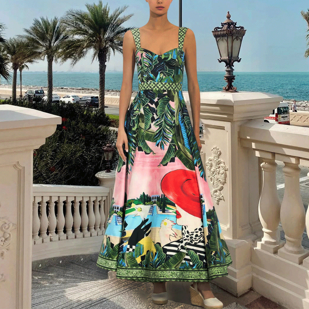 Printed Waist Controlled Slimming One Piece Swimsuit Women Vacation Beach