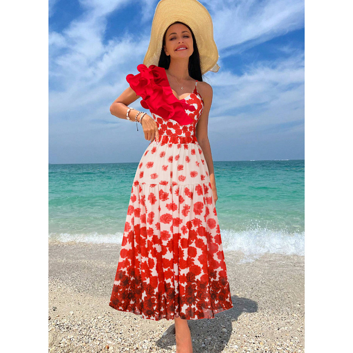 Ruffled Printed One Piece Swimsuit Women Umbrella Skirt Two Piece Sets